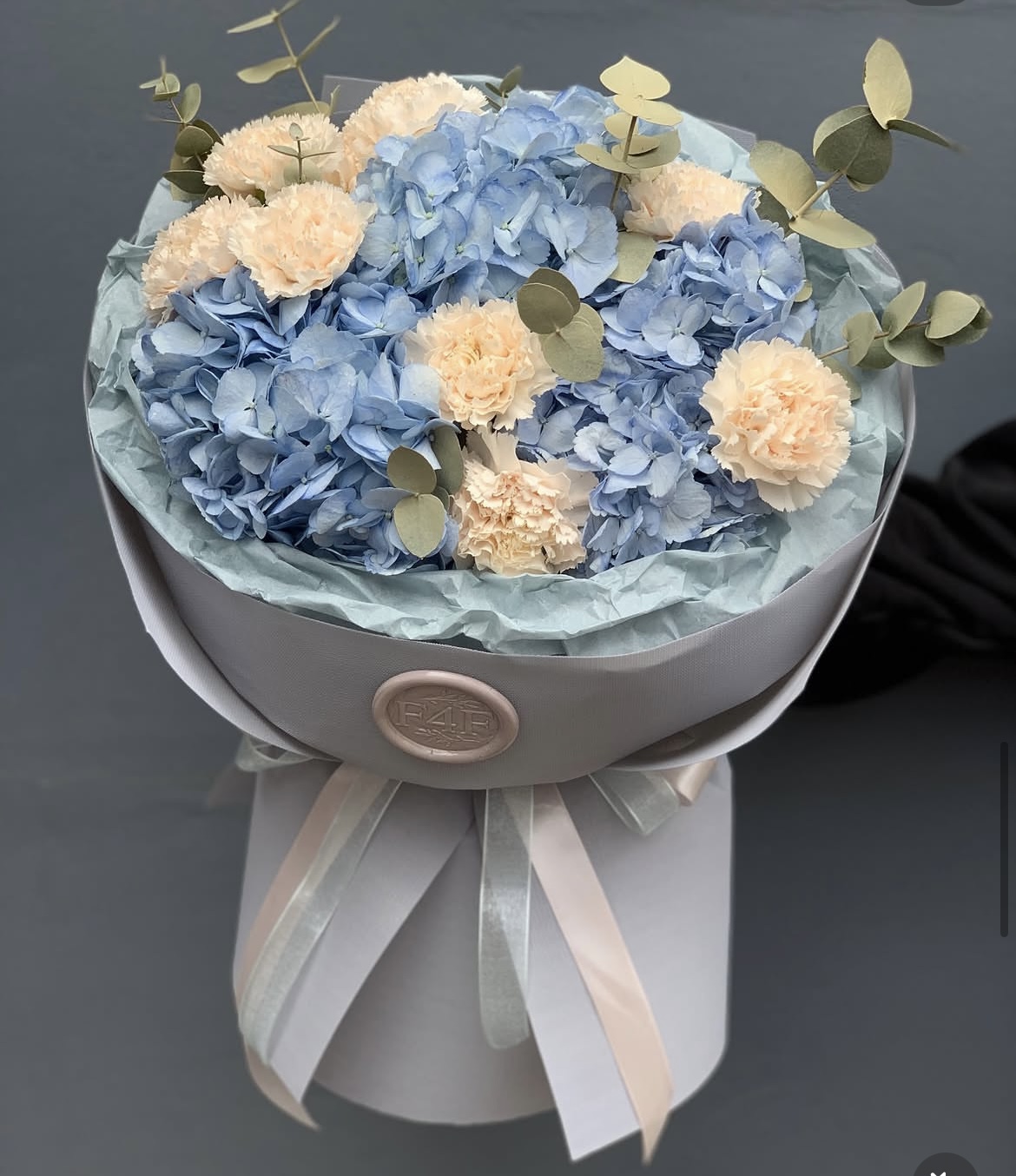 Погрузитесь в атмосферу нежности и элегантности вместе с нашим букетом! Гортензии глубокого синего оттенка символизируют искренность чувств, а кремовые гвоздики наполняют композицию теплом и романтикой. Элегантные ветки эвкалипта подчеркивают изысканность подарка. Этот букет станет идеальным выбором для признания в любви, поздравления близких людей или украшения интерьера вашего дома. Создайте незабываемые моменты с первыми цветами природы!