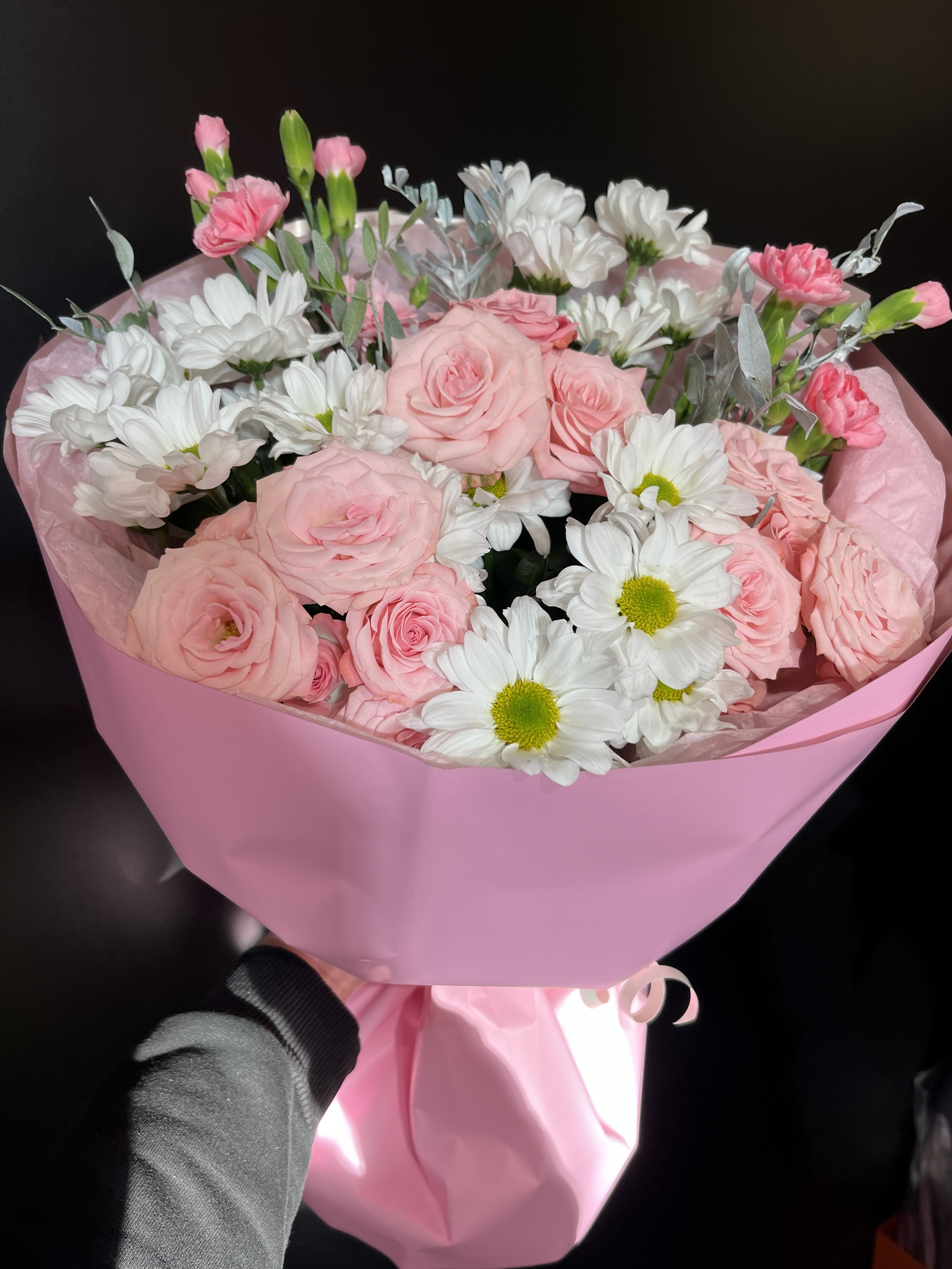 Погрузитесь в очарование природы с нашим уникальным букетом! В нём нежные хризантемы-ромашки символизируют тепло и уют, пышная роза кустовая придаёт благородство образу, а гвоздика кустовая добавляет выразительности и свежести. Этот букет — идеальный способ выразить свои чувства к дорогим людям, подчеркнуть индивидуальность подарка и создать атмосферу искренней радости и гармонии. Подарите близким красоту и внимание уже сегодня!
